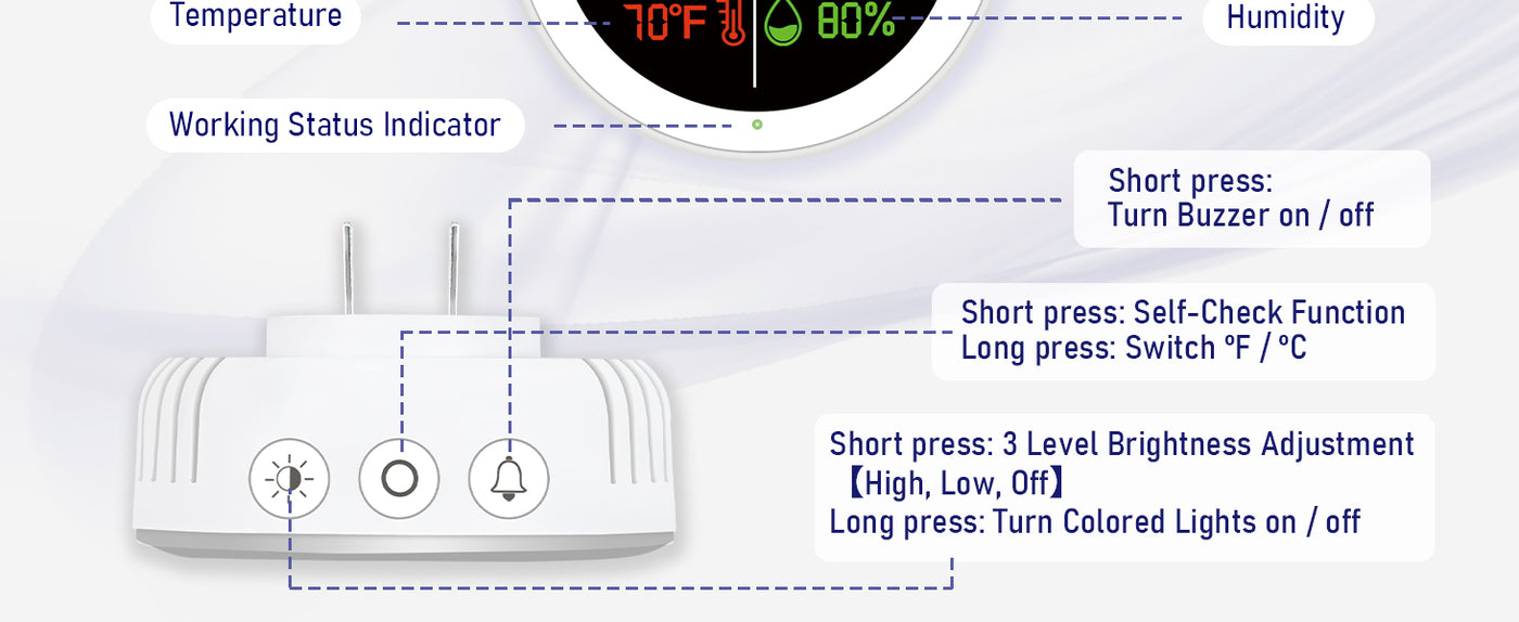 • Comprehensive CO detector Plug-in Design: This plug-in carbon monoxide detector is compatible with 110V to 220V AC power sockets.