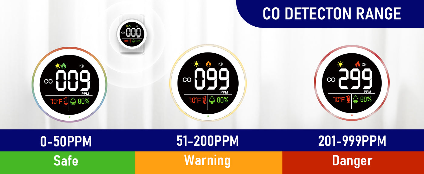 • CO detection range: 0-999PPM, and the accuracy is ±5PPM