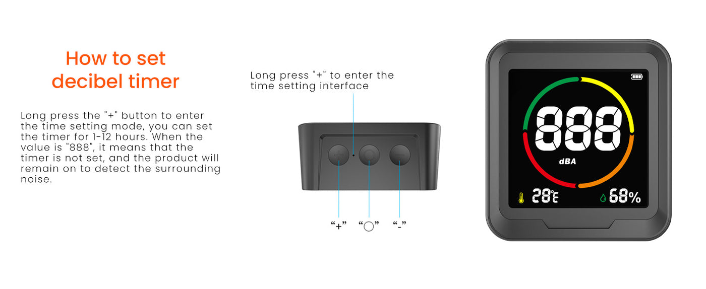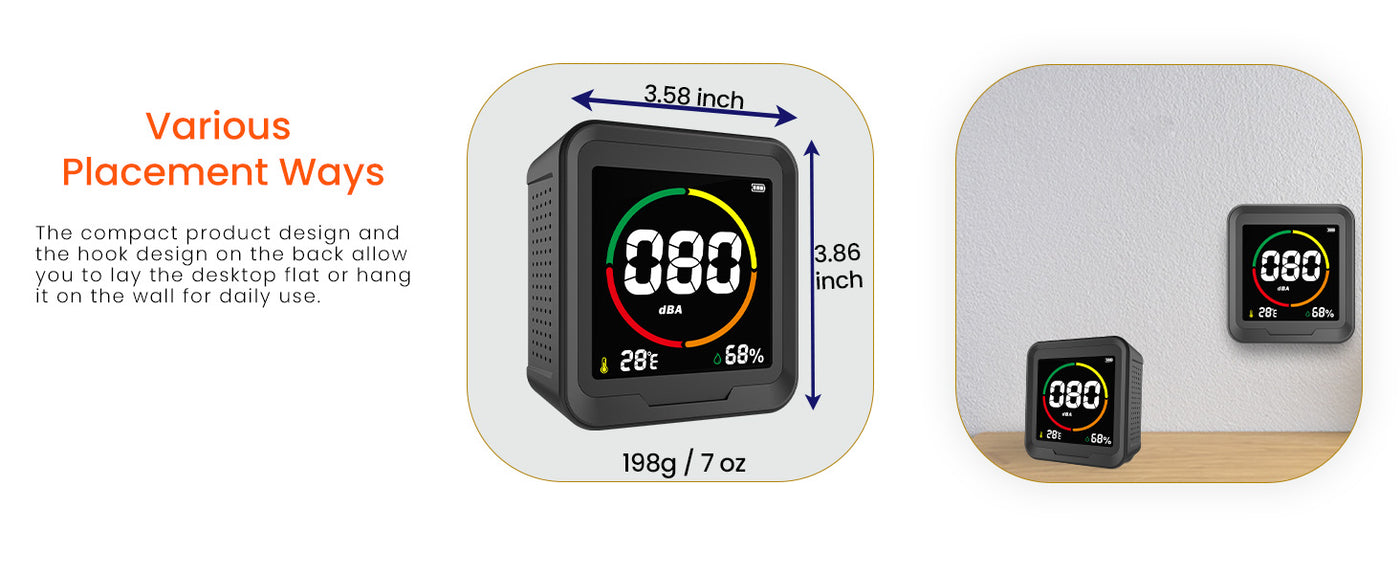 • The 3rd Improved Version of the Noise Detector: Compared with the old version of the noise detector, we have upgraded the accuracy of the product. No need to convert any formulas, just plug it in and it will display the accurate decibel value.
