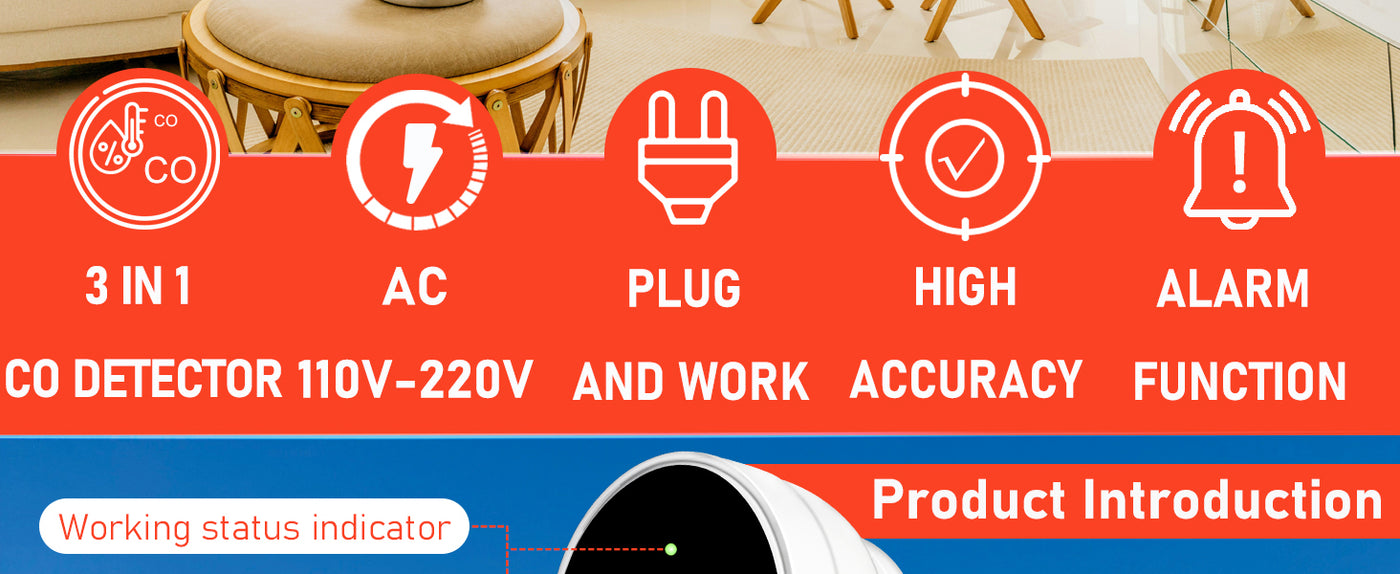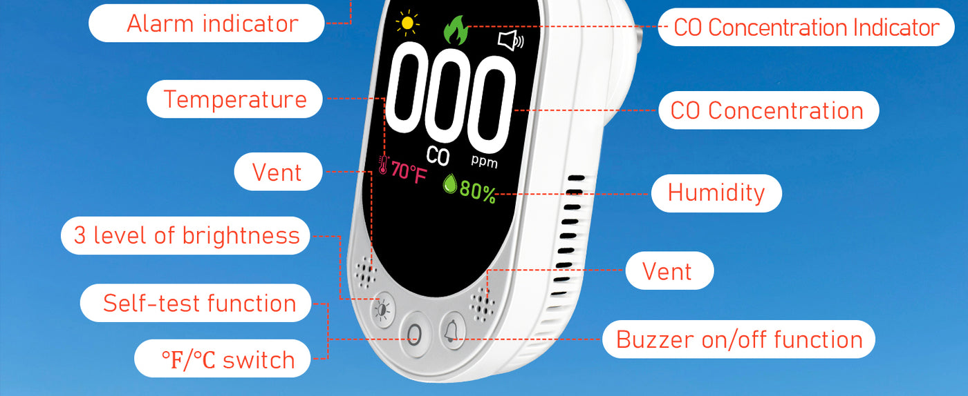 • CO detection range: 0-999PPM, and the accuracy is ±5PPM